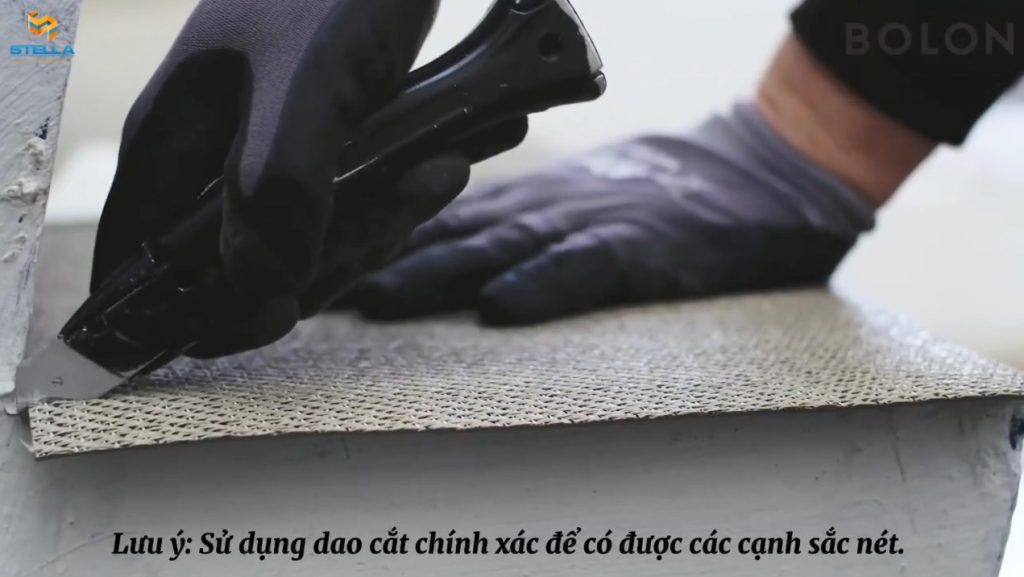 • Việc lắp đặt sàn dệt vinyl Bolon trên cầu thang đòi hỏi sự chuyên nghiệp. Vì vậy nếu bạn không tự tin hoặc không có kinh nghiệm, hãy tìm một nhà thầu chuyên nghiệp để thực hiện công việc này.